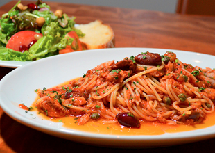 2017.05.11 3種類のスパゲッティ(1つは日替わりメニュー)からお選び頂ける¥1000のセットをご提供。サラダ、自家製パン、食後のお飲み物をお付けします。